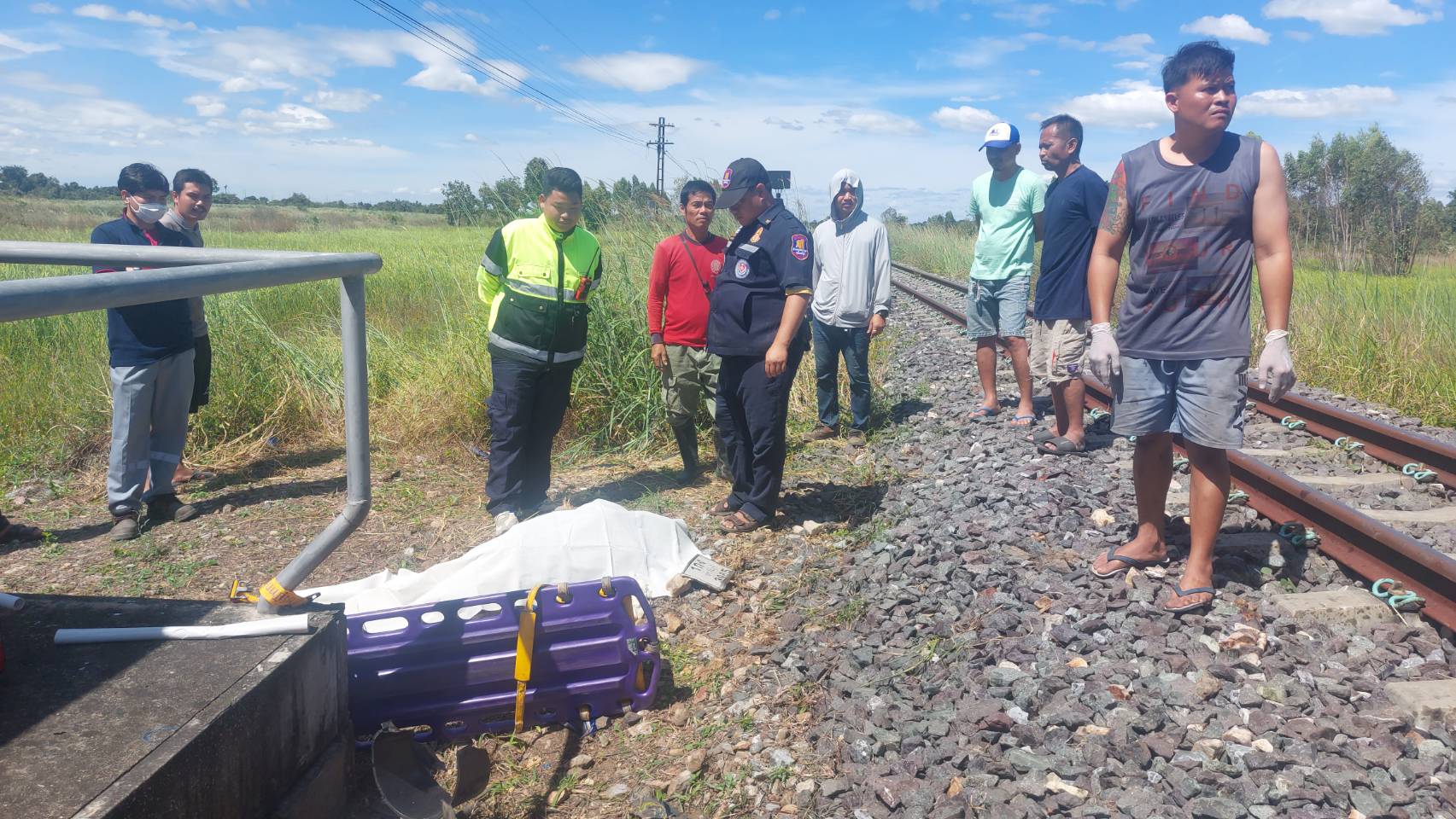 -สลด !!! เมียตามหาสามีหลังเข้าบ้านผิดเวลา พบนอนเสียชีวิตข้างทางใกล้รางรถไฟ